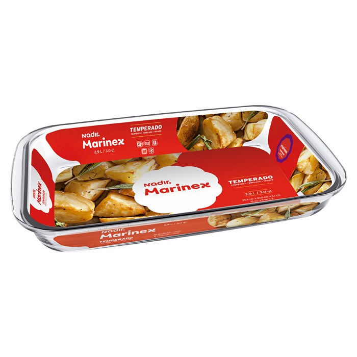 Assadeira vidro ret 2,9lts transp marinex cx:006