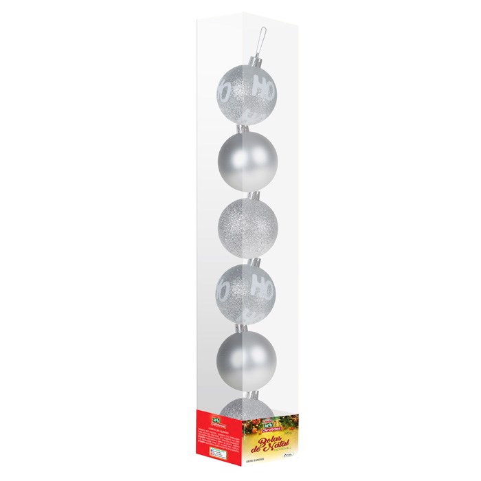 Bola tb hohoho 6cm 6pcs prata cx:036