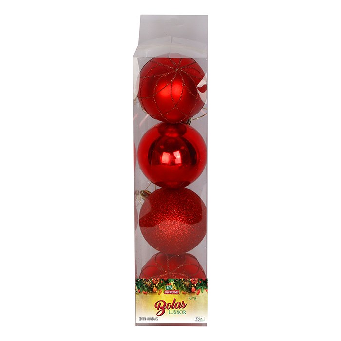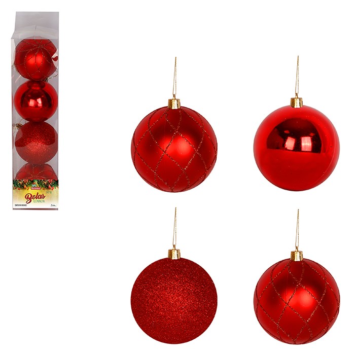 Bola tb luxxor 8cm 4pcs vermelha cx:024
