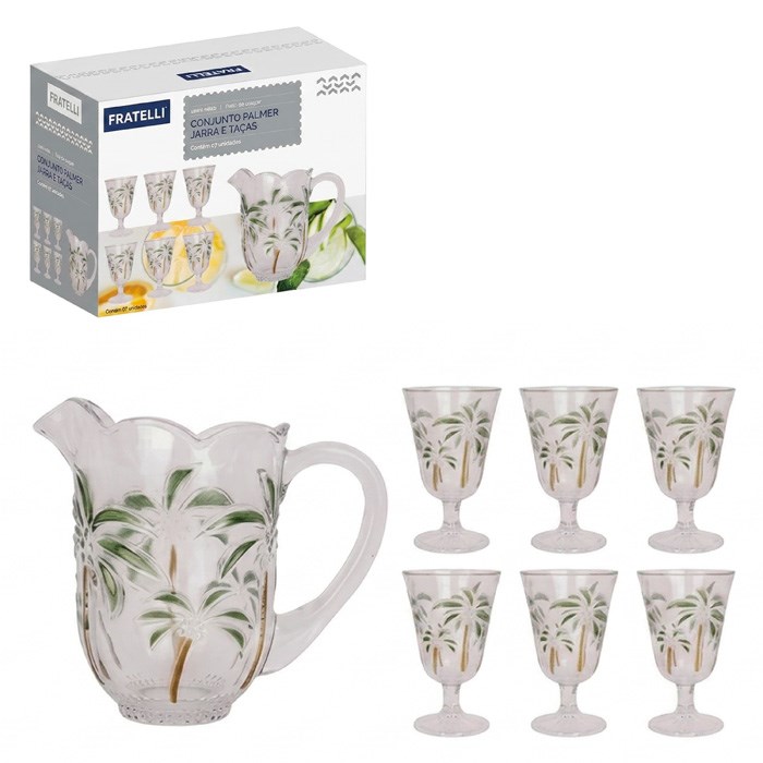 Cj jarra e tacas vidro 1,5lts e 230ml 7pcs palmer cx:004